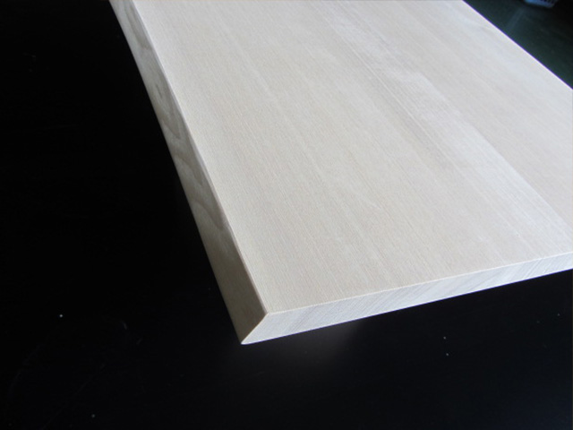 横ハギ1枚板への塗装については、角を削る糸面加工とのセットで行います。(標準仕様)